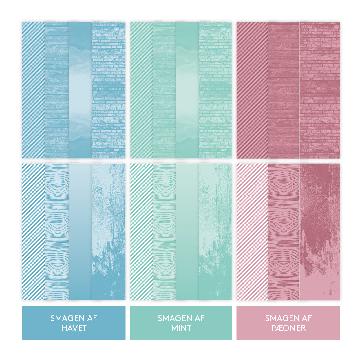 11 stk. designark i en sampak med tryk på begge sider. Vi har nøje udvalgte 3 skønne farver som komplimentere hindanden godt.