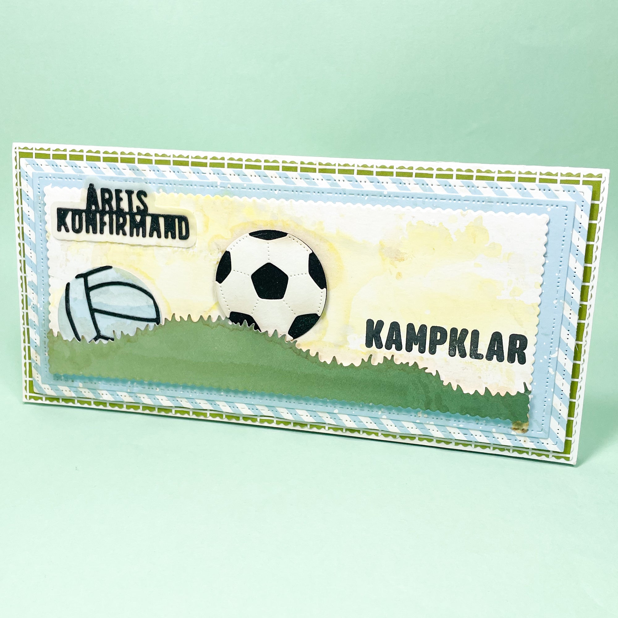Du får I alt 9 slimline dies (aflange firkanter). De er lavet så de passer perfekt som baggrundsdies på slimline cards. Baggrunden vil ikke gå helt ud til kanten af kortet men give vidt plads så kortet har en ramme. Ved alle dele er der små detaljer i kanten i form af Three Scoops genkendelige mønster med én streg og tre prikker.