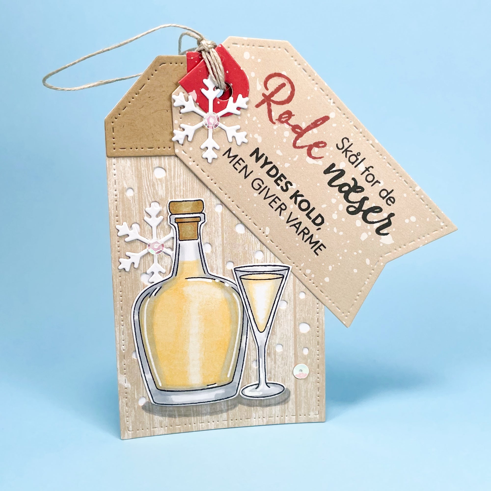 Stempelsæt med illustration af snapseflaske og snapseglas. Stempelpakken indeholder yderligere tilhørende stempeltekster: