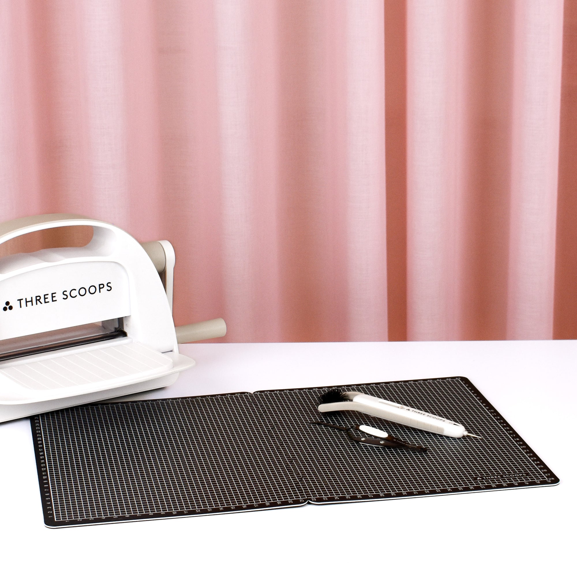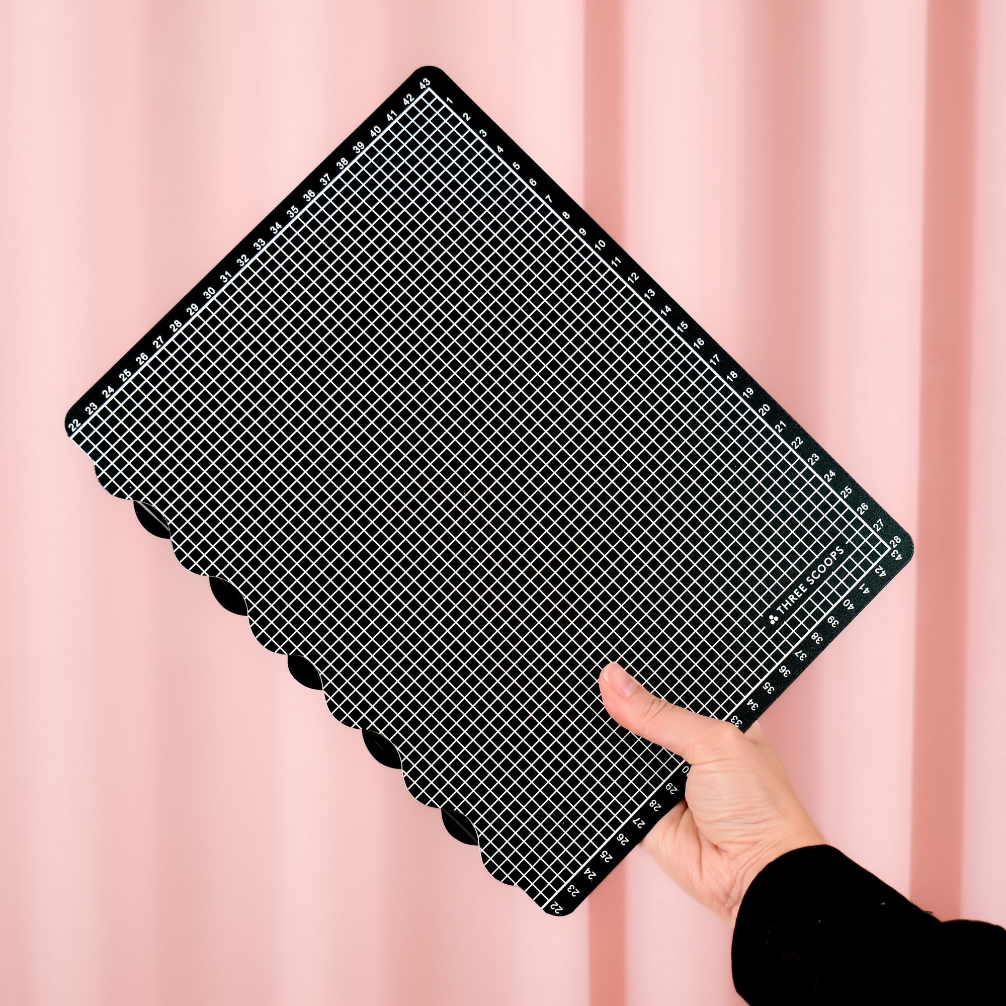 Three Scoops foldbare skæreunderlag i et enkelt sort design med gittermønster i hvidt.
