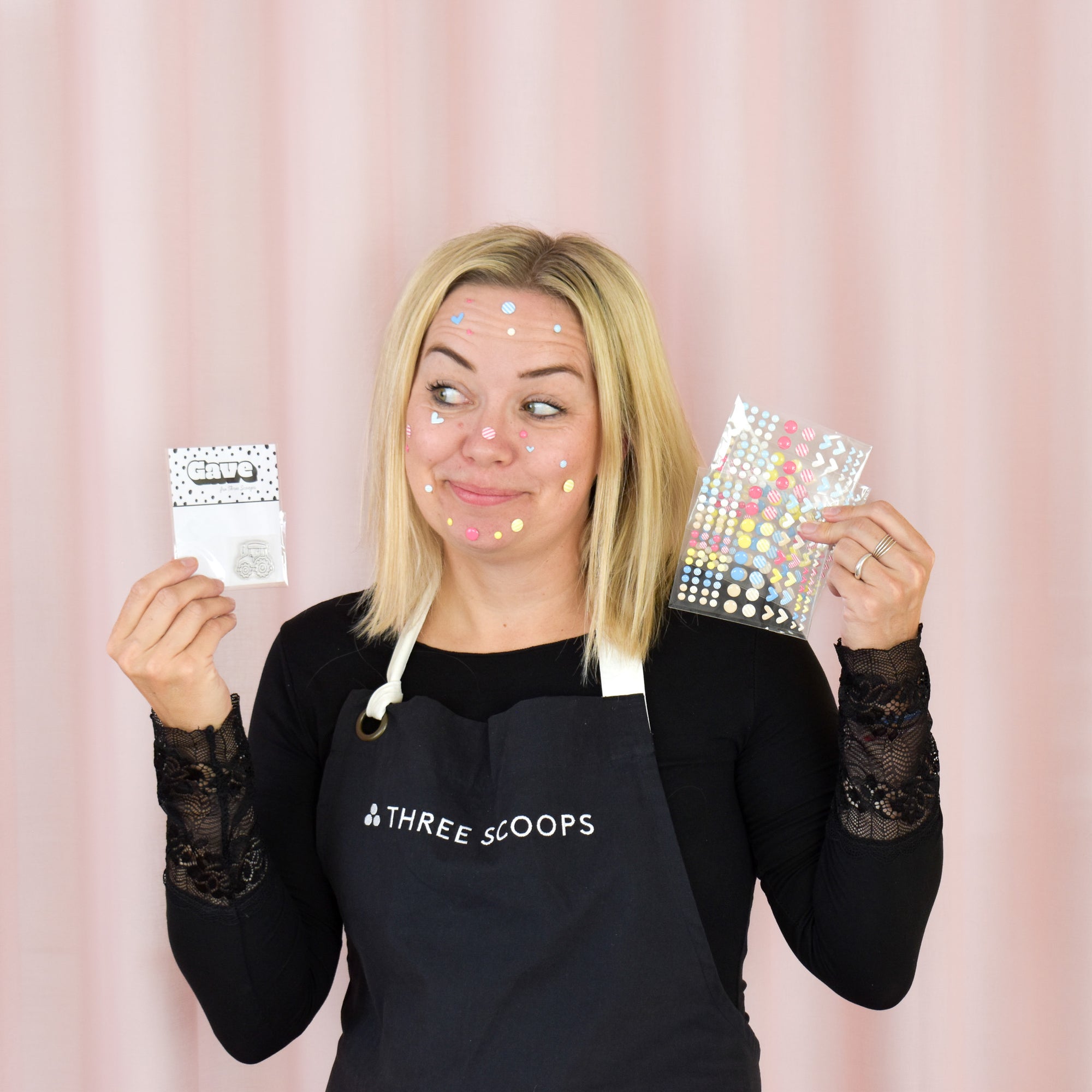 Enamel dots er små, selvklæbende, flade halvperler, i små og stor runde former, samt små og store hjerter.