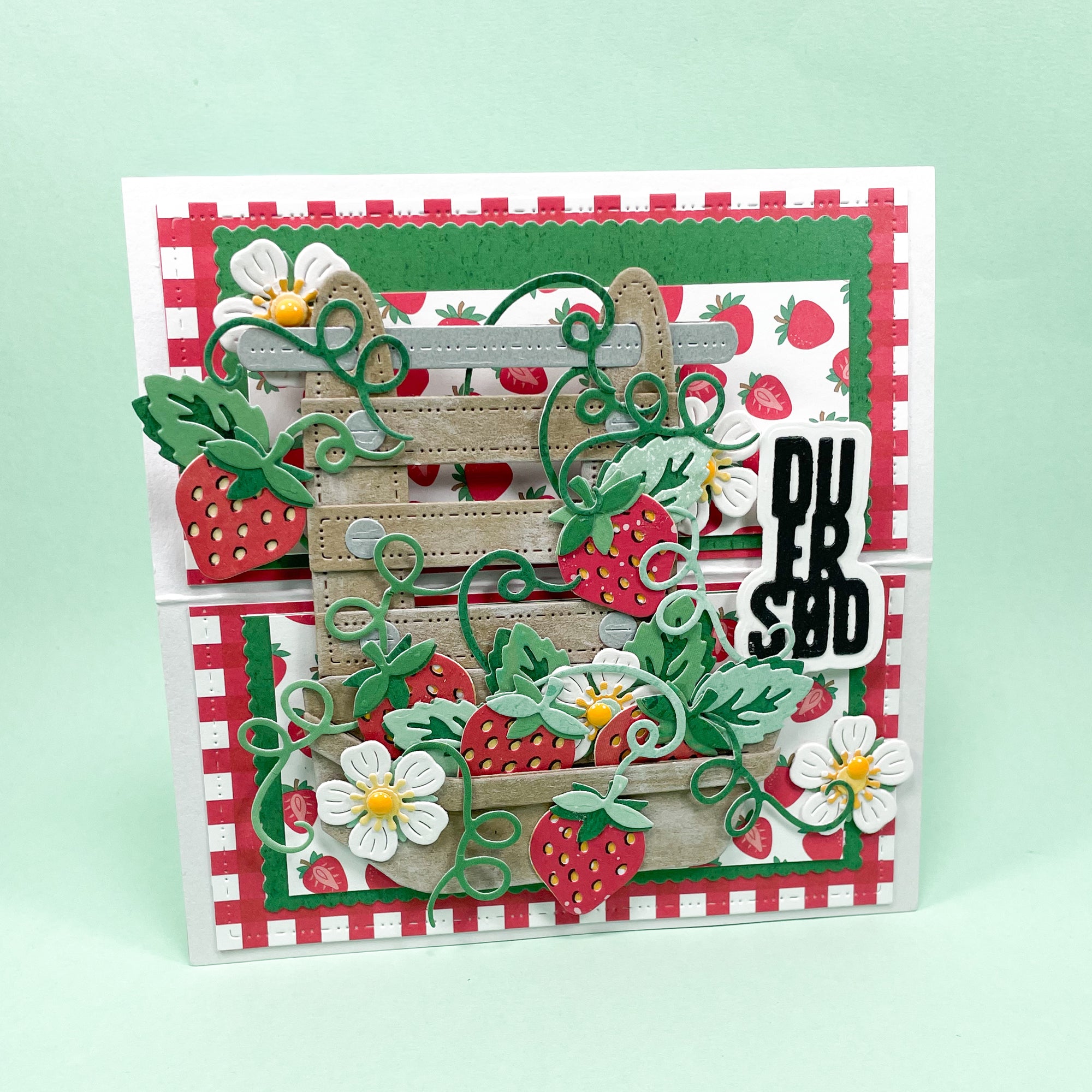 Jordbær med blomst, indeholder dies til udstansning af jordbær, blad og blomst.